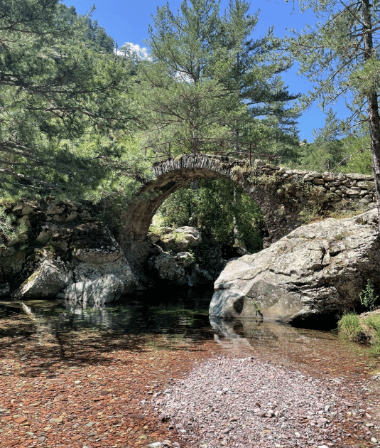 Randonnée ombragée au cœur du Parc naturel régional de Corse au départ de la Maison Forestière de Tartagine en longeant la rivière jusqu’au pont génois.